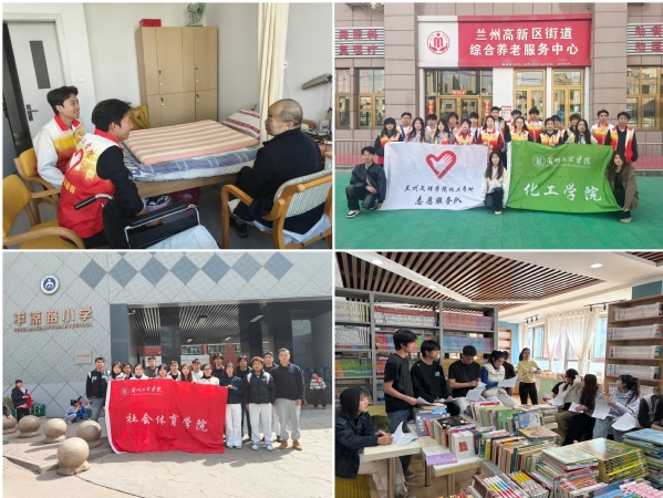校内校外躬身实践,用行动传递温情。校内,各学院开展校园清洁、文化地标维护;校外,化工学院开展助老服务,教育学院帮扶特殊儿童,旅游学院开展黄河净滩行动,社会体育学院助力兰州市青少年图书馆平凉路小学分点建设,用点滴行动诠释志愿精神。
